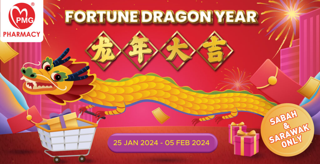 Roar into the Fortune Dragon Year with great savings at all PMG Pharmacy in 𝐄𝐚𝐬𝐭 𝐌𝐚𝐥𝐚𝐲𝐬𝐢𝐚!