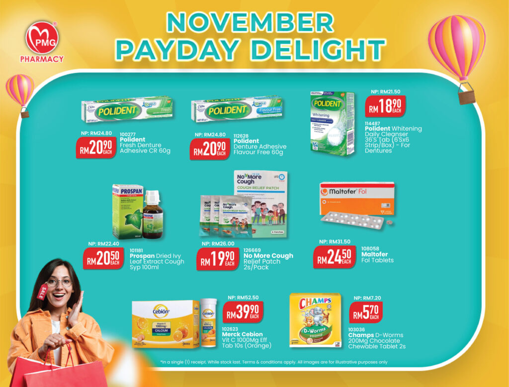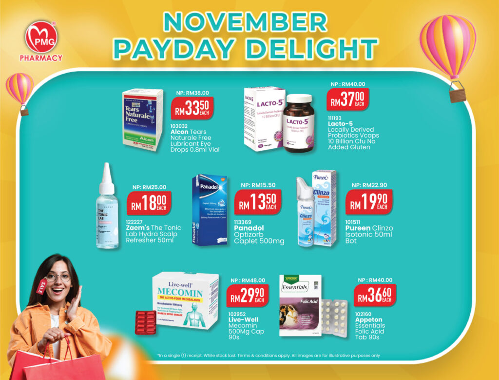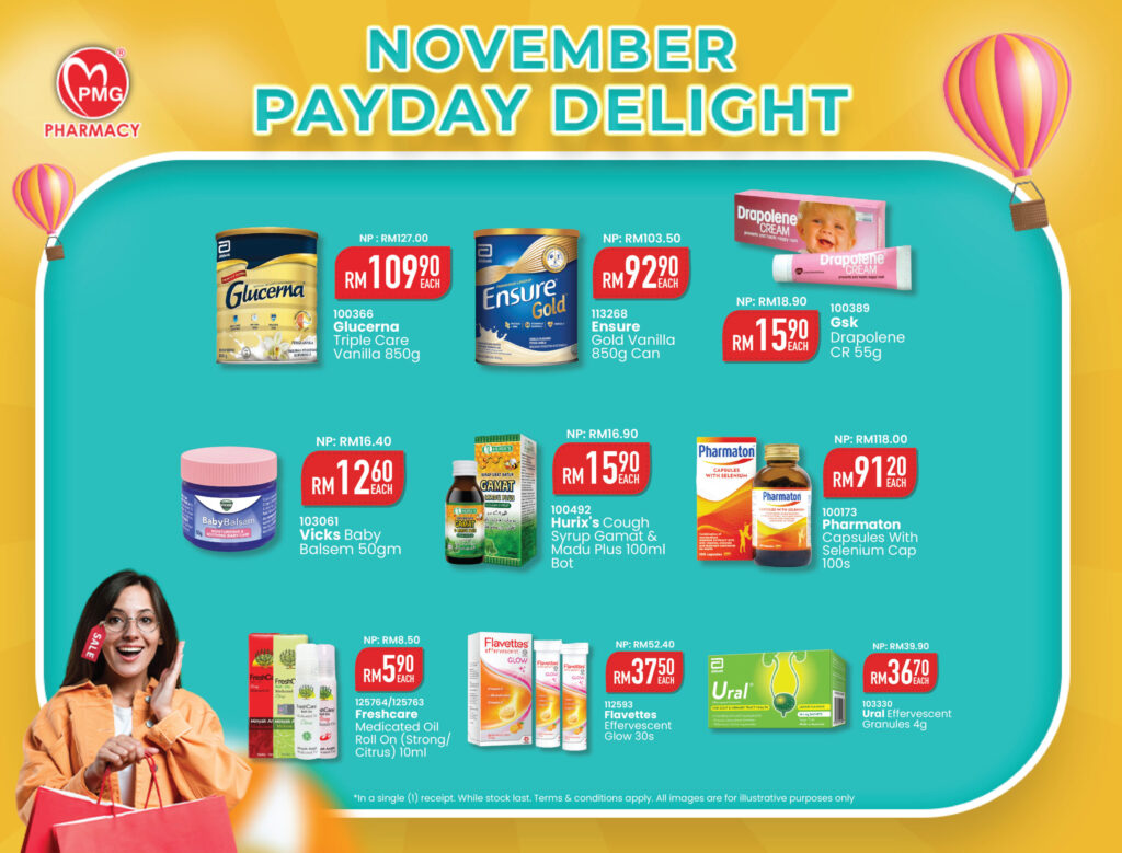 Score incredible deals on all your health needs at PMG Pharmacy. Rush in any PMG Pharmacy in West Malaysia and make the most of these unbeatable offers!